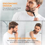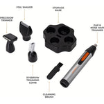 With an ergonomic design that fits comfortably in your hand, the trimmer allows for easy, precise control, ensuring you can efficiently tackle nose, ear, and hair trimming without any hassle. The all-in-one kit includes everything you need for a complete, professional-quality grooming experience—so you can look and feel your best with every trim.