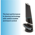Includes interchangeable monoblade head for 0.2mm stubble detailing, plus a 20-length adjustable beard trimmer from 0.5mm to 10mm.