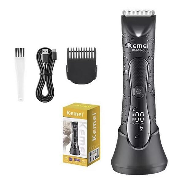 Kemei KM-1846 Waterproof Hair Trimmer Private Area Hair Remover Electric Hair Shaver Bikini Trimmer USB Charge